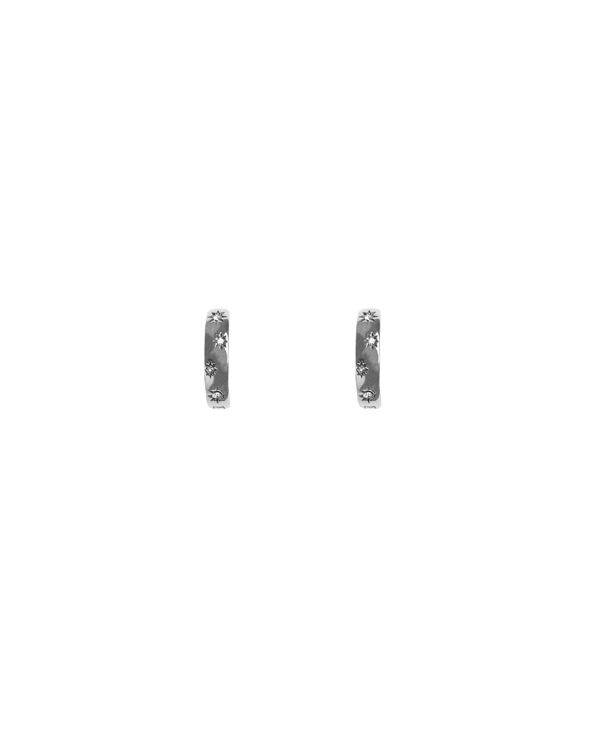 Simple everyday silver huggies with rhinestone star detailing. Perfect for stacking or as a minimal look on their own.
