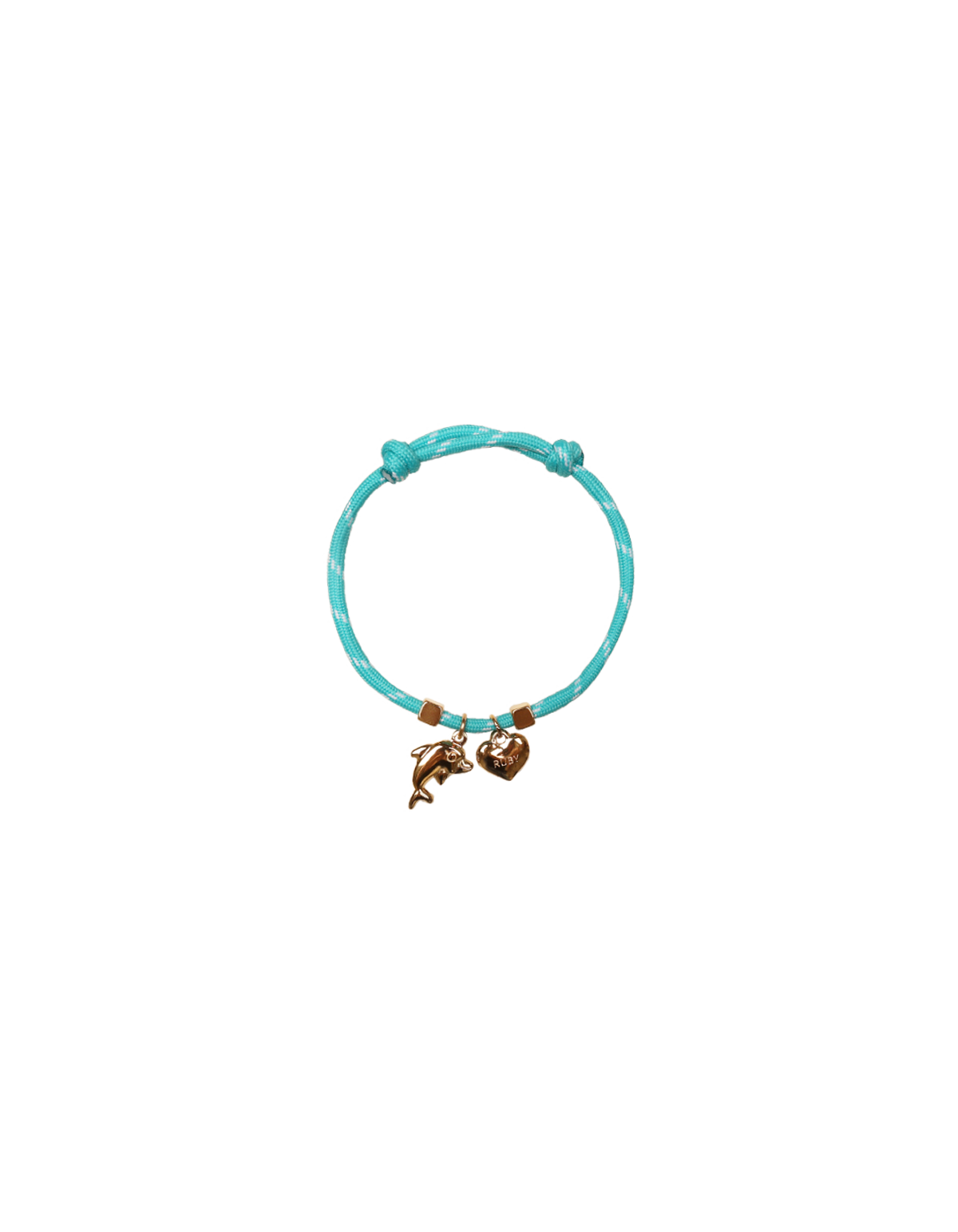 Sporty cord bracelet with a feature dolphin and heart charms.