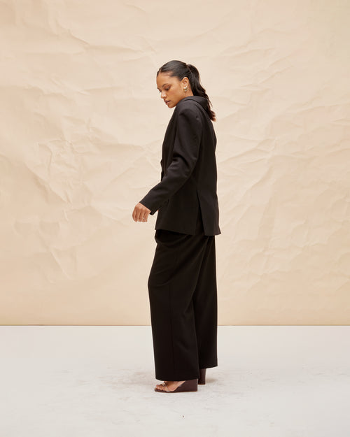 Single breasted slouchy style blazer designed in a black. This blazer is an everyday wardrobe staple.