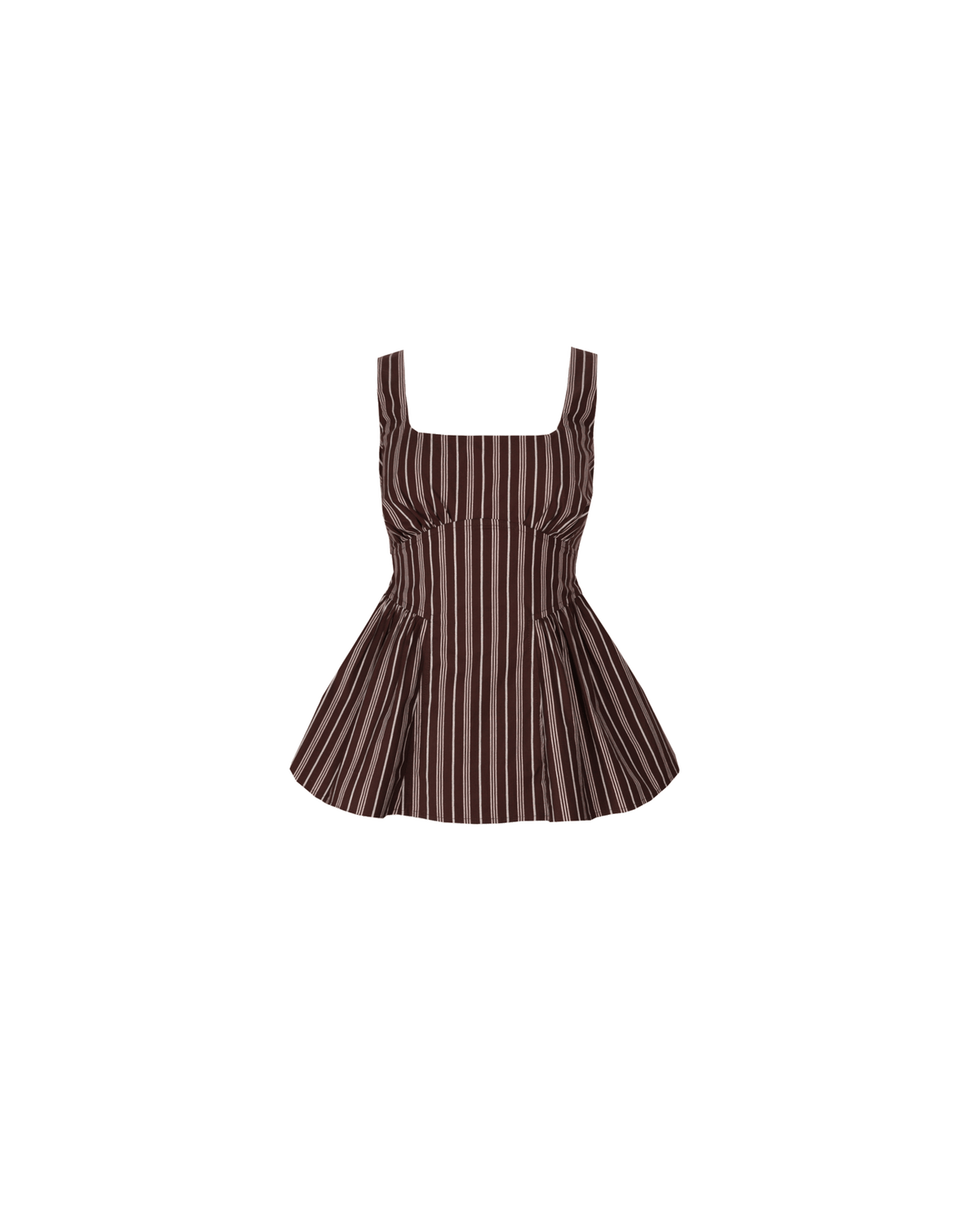 Cotton top with panel details down the front and gathers at the side seams to create a dropped waist look. Wide-set straps and a square scooped neckline make this an easy-to-wear top whilst looking super chic.