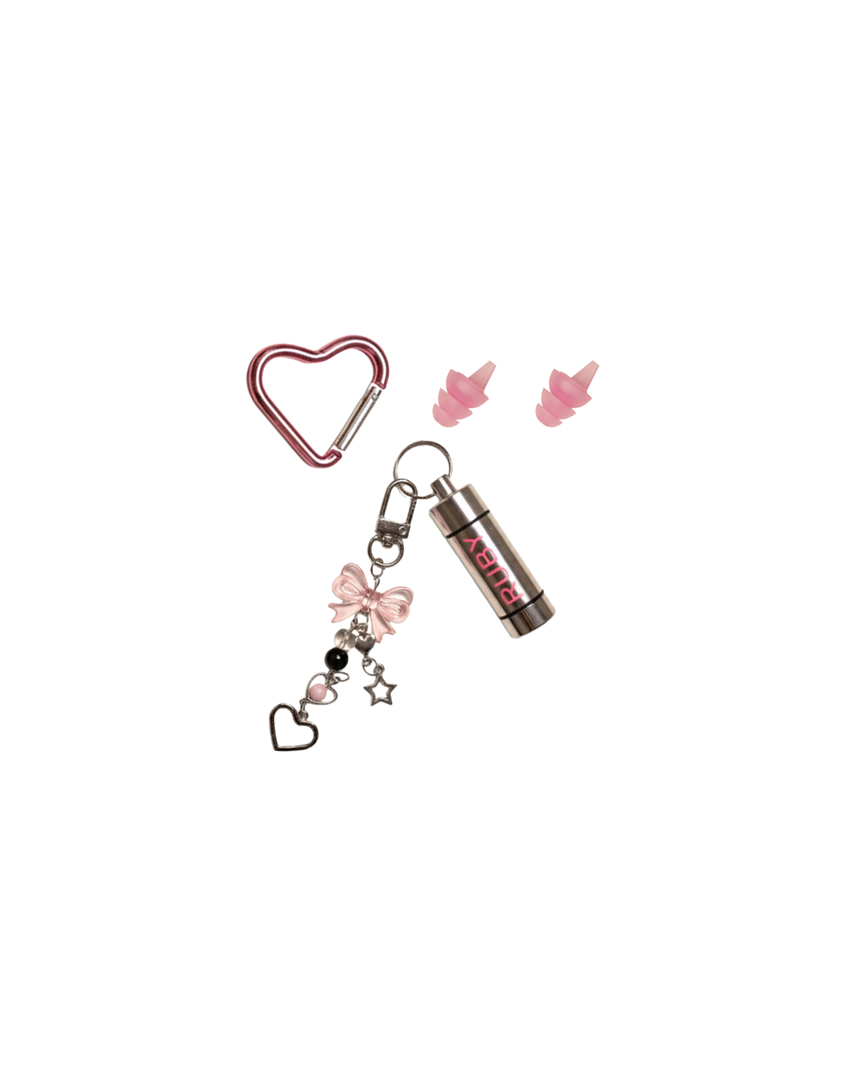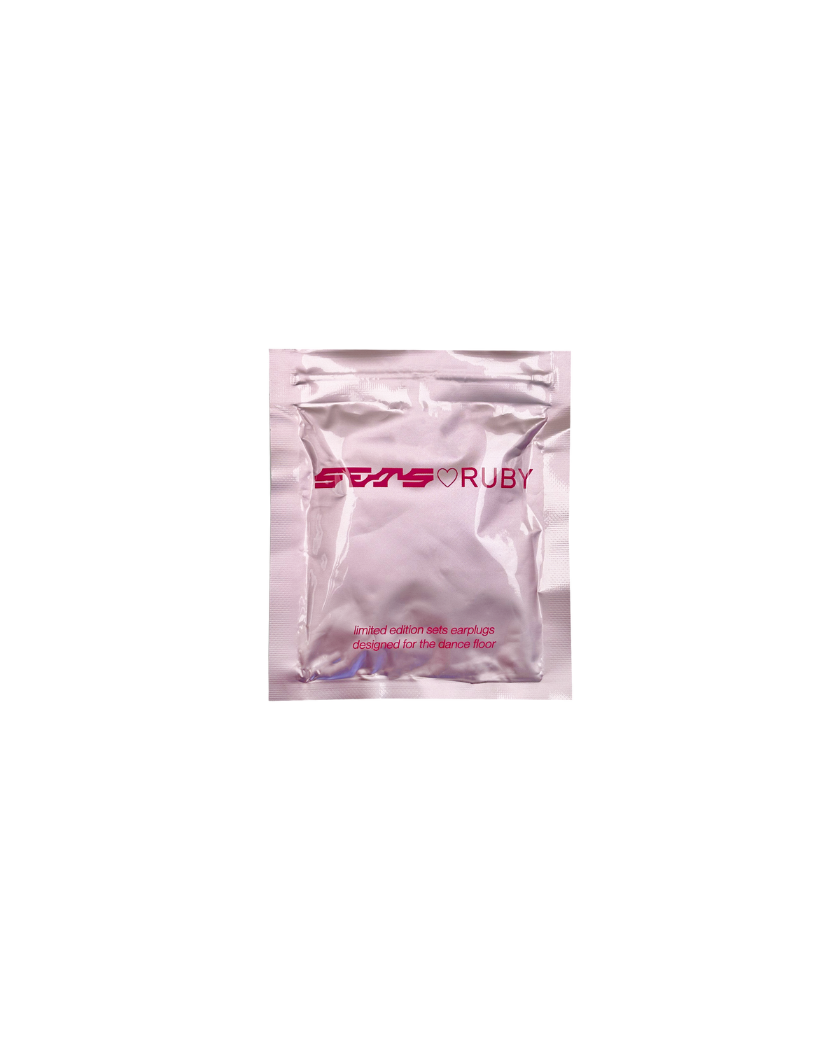 Limited edition Sets x RUBY earplugs designed for the dance floor. These earplugs reduce noise by 23 decibels, protecting your ears without sacrificing sound clarity.
