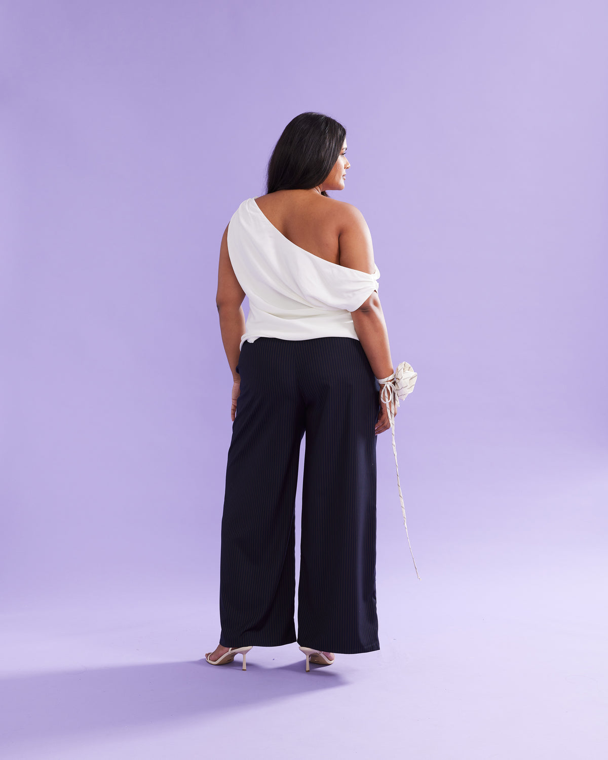 One shoulder top designed in an ivory viscose fabric, with a silk-like hand feel and look.