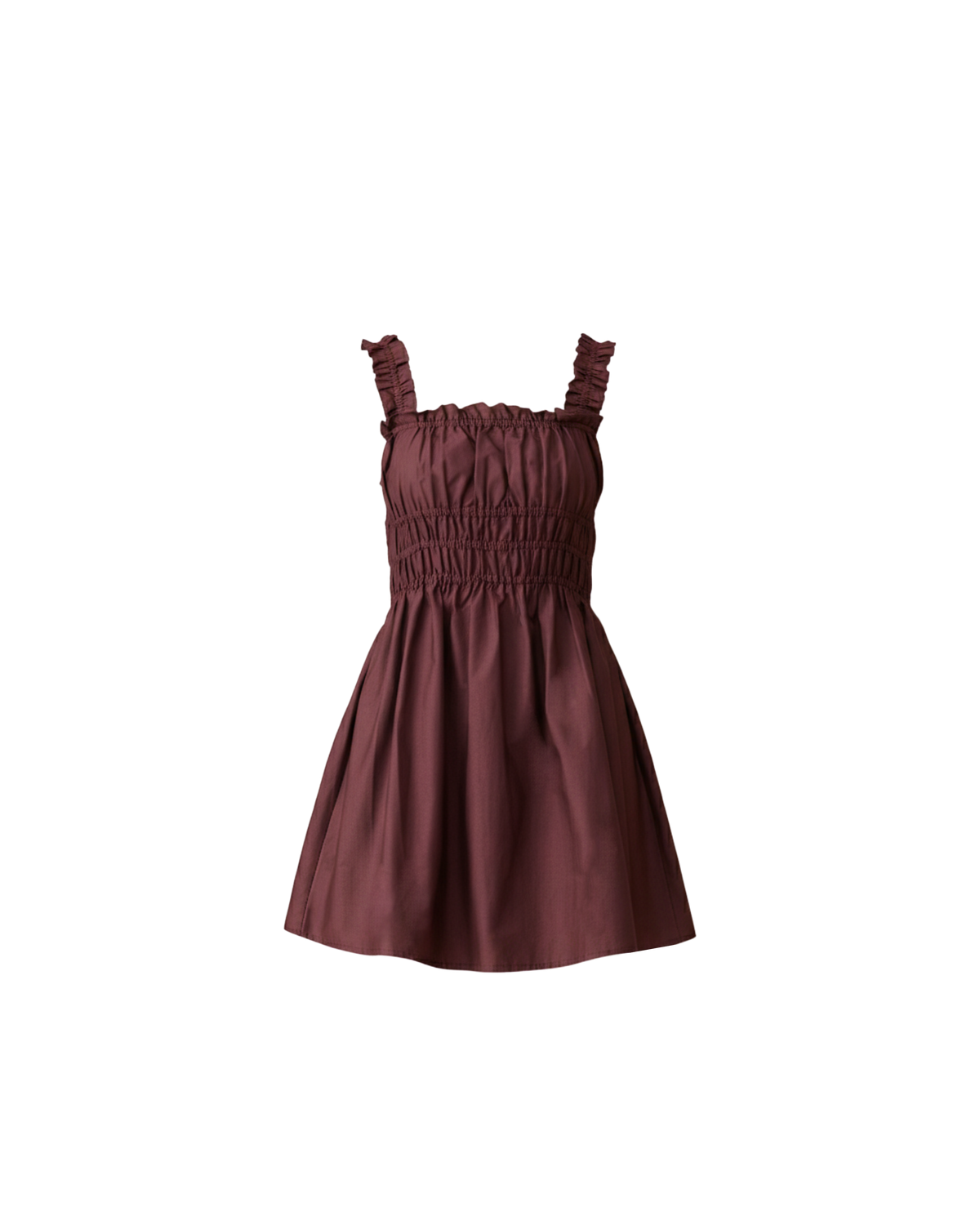 Sleeveless cotton mini dress with a square neckline and shirred bodice and straps. This dress falls to an A-line skirt, that features pockets to house all your essentials.