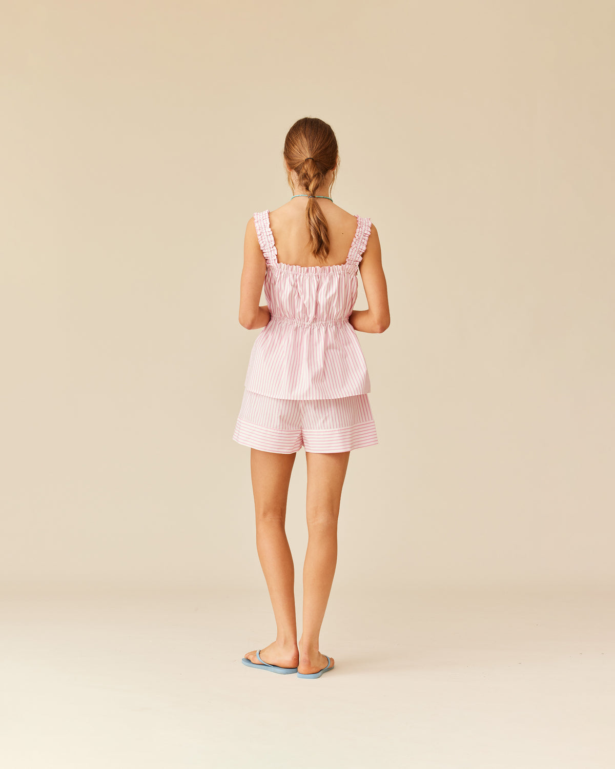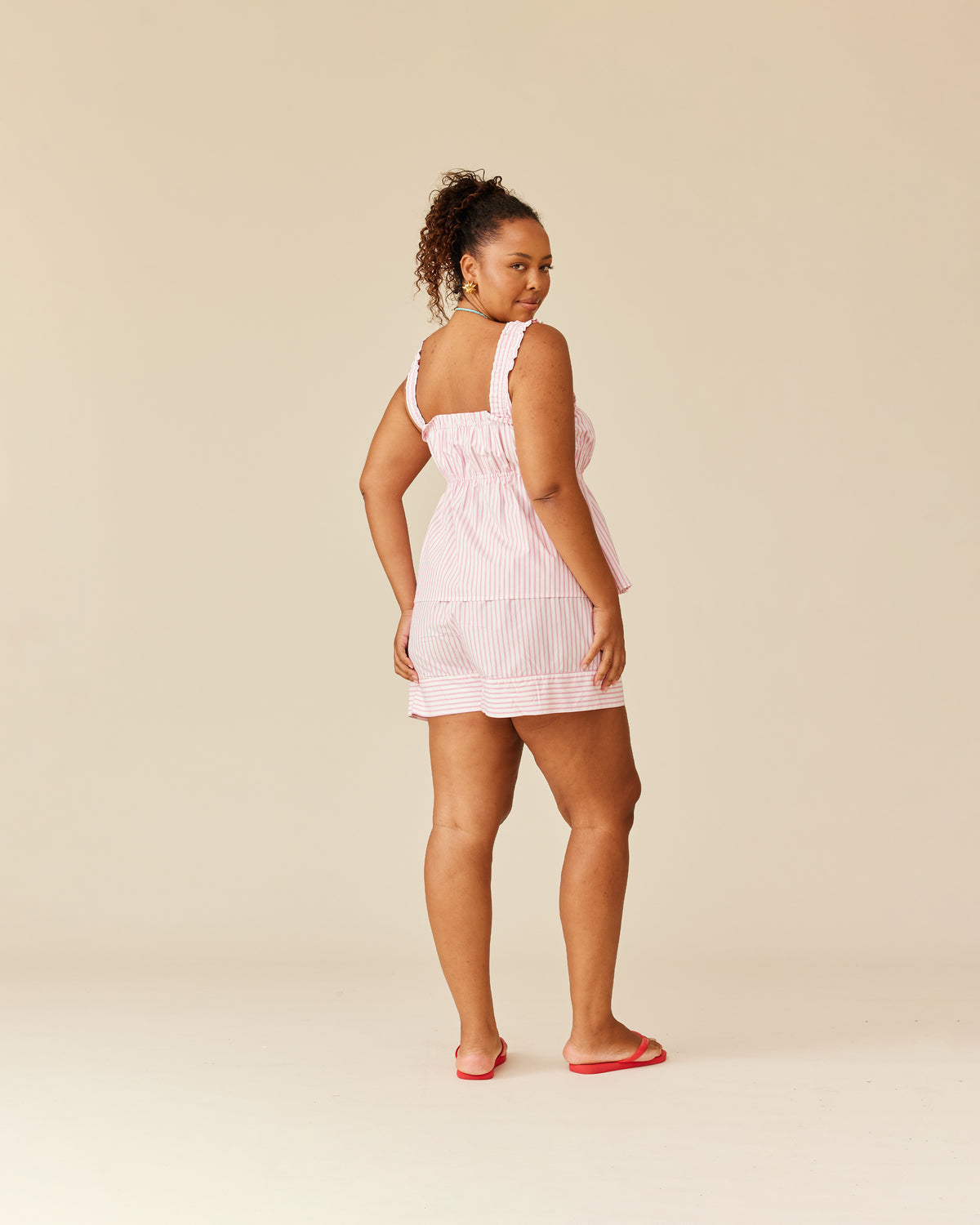 Sleeveless cotton top with a square neckline. This top falls to a full A-line shape and has shirring through the bust and straps for an accommodating fit. Make it a set with our Butterfly Short.
