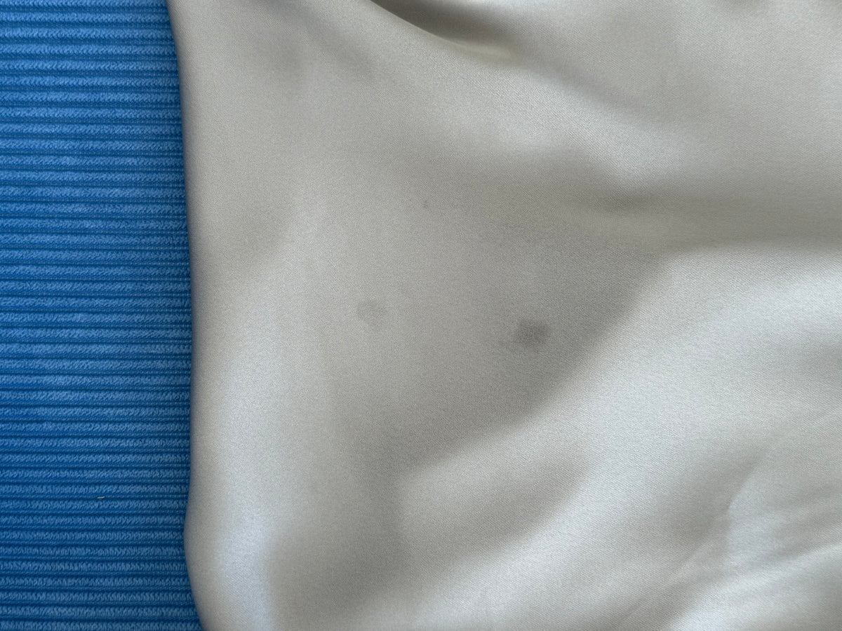 Satin is a delicate fabric. This garment is a second and has small fabric pulls and marks. These marks most likely occured while in transit from our suppliers to our head office. This fault is slightly varied across all pieces.