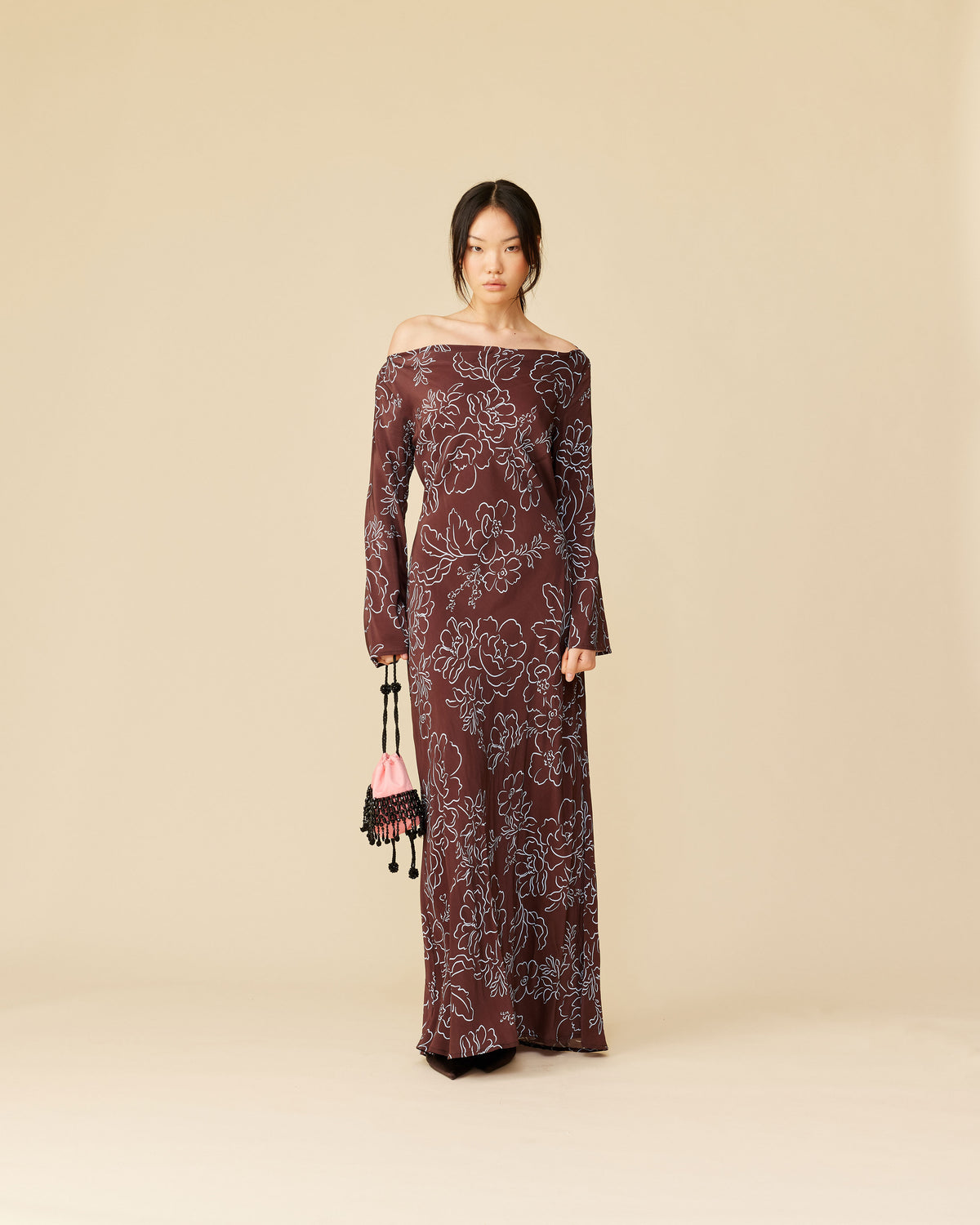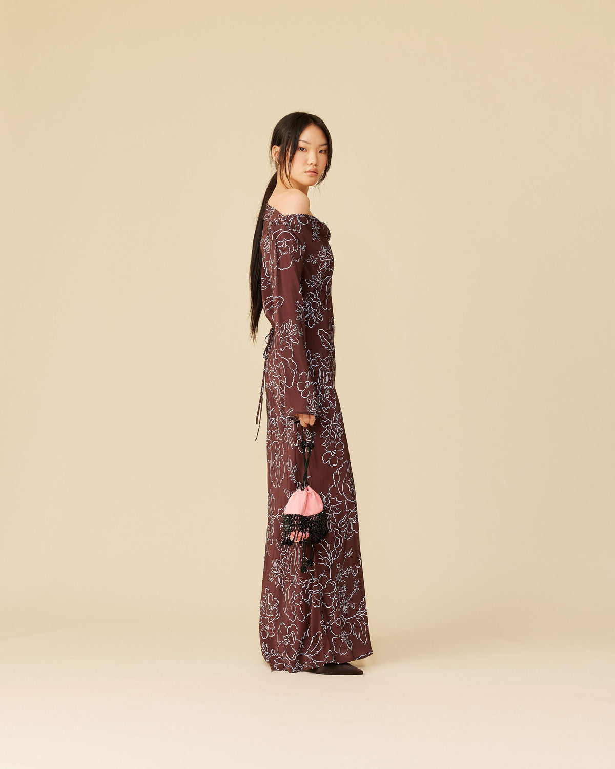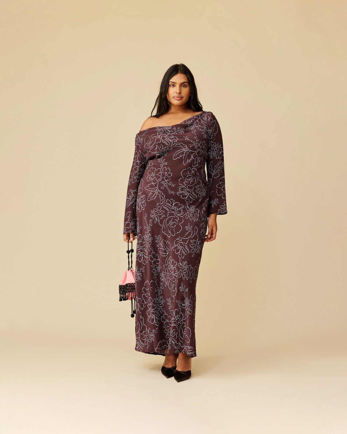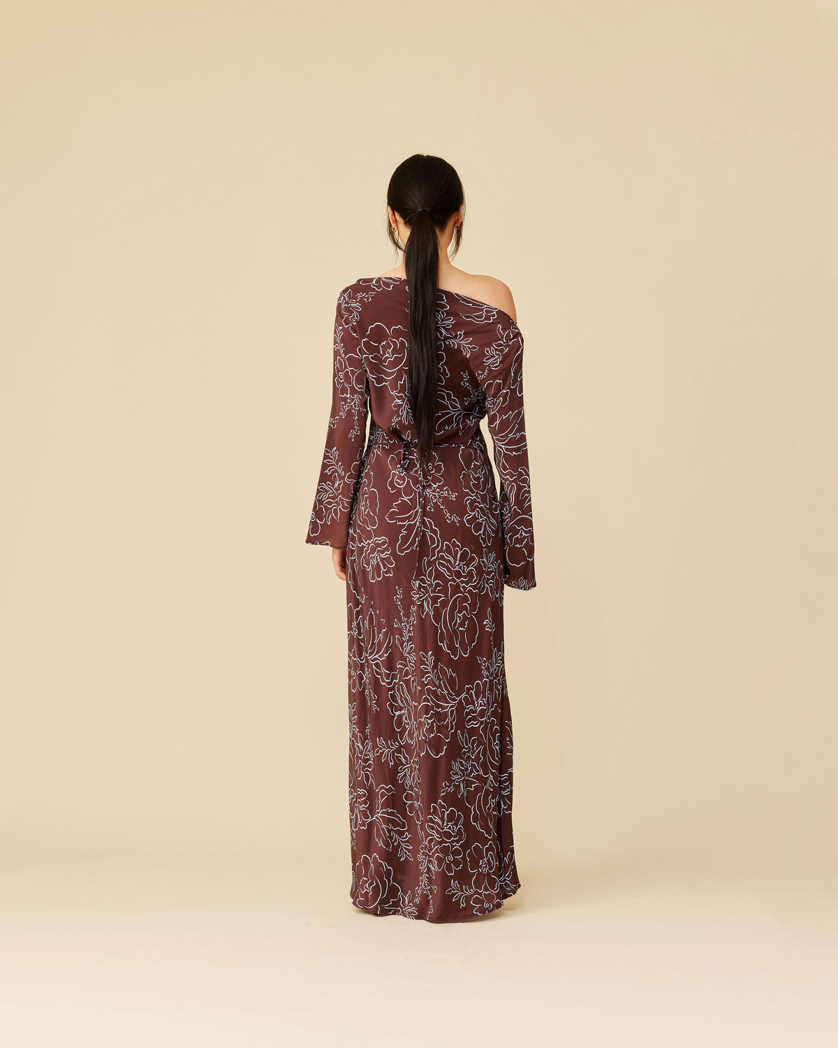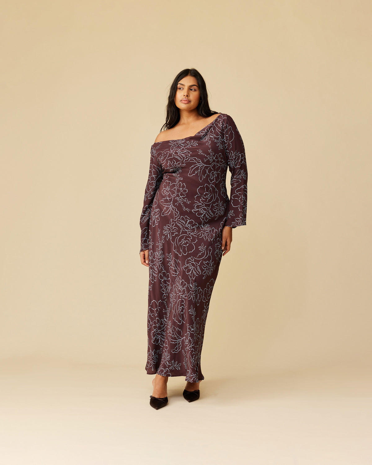 Bias cut long sleeve dress imagined in our burgundy floral. Features a built in waist tie to allow you to cinch as you wish. Simple yet versatile.