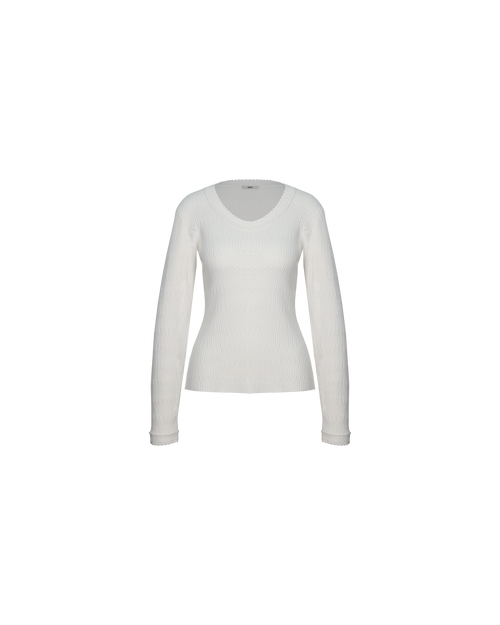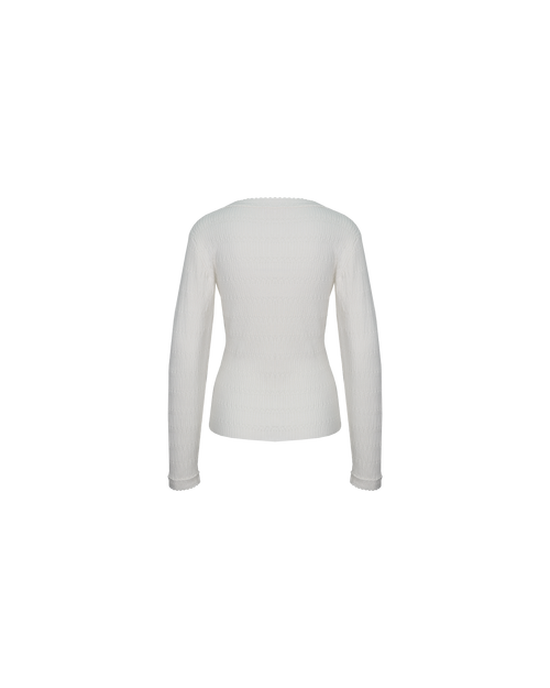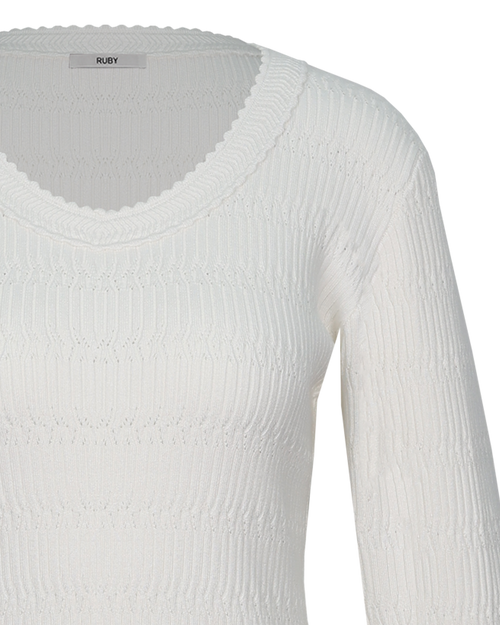 Braided knit long sleeve designed in a soft mid-weight knit with a plush hand-feel. This top has a neckline rib detail that adds to the luxe feel of the piece.